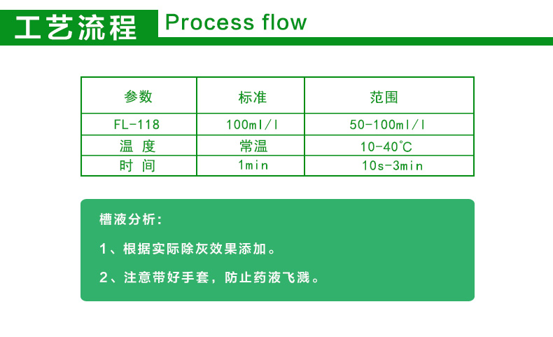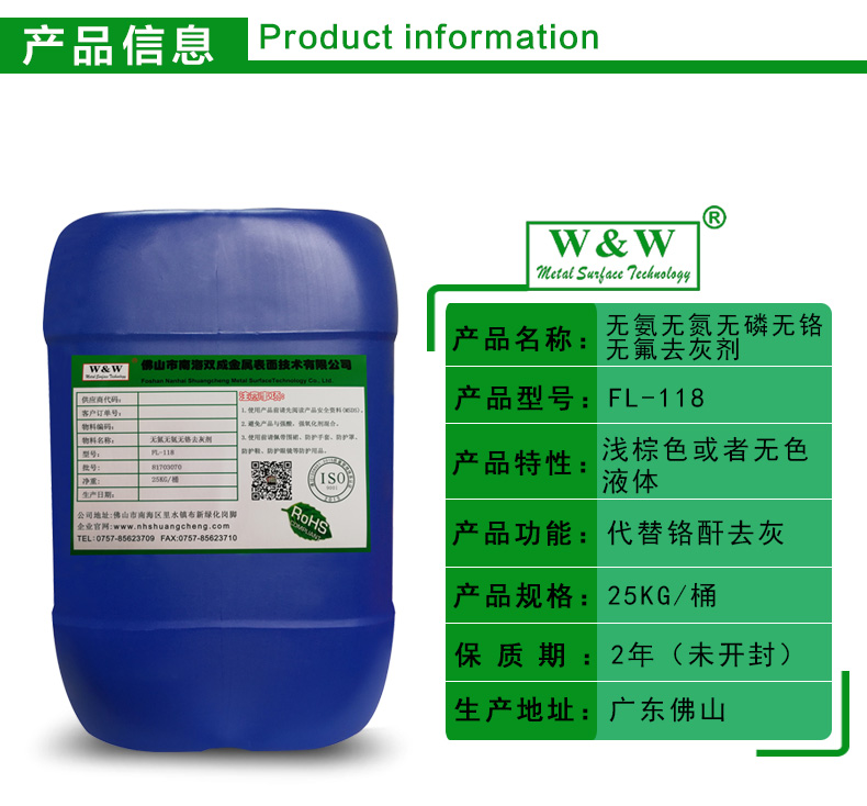 關(guān)鍵詞:FL-118,無鉻,無氮,無氨,環(huán)保,去灰劑,